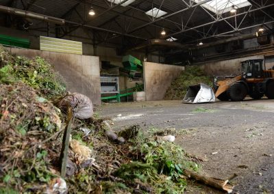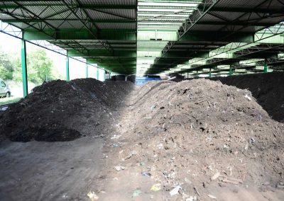 Nachdem das vergorene Material die Fermenter verlässt, wird es in Tunnelmieten gestapelt und mehrmals umgesetzt, bis am Ende der fertige Kompost das Werk verlässt. Die jährliche Produktion liegt in Suchy Las bei ungefähr 15.000 Tonnen Kompost, die in Privatgärten und landwirtschaftlichen Flächen in der Umgebung landen.